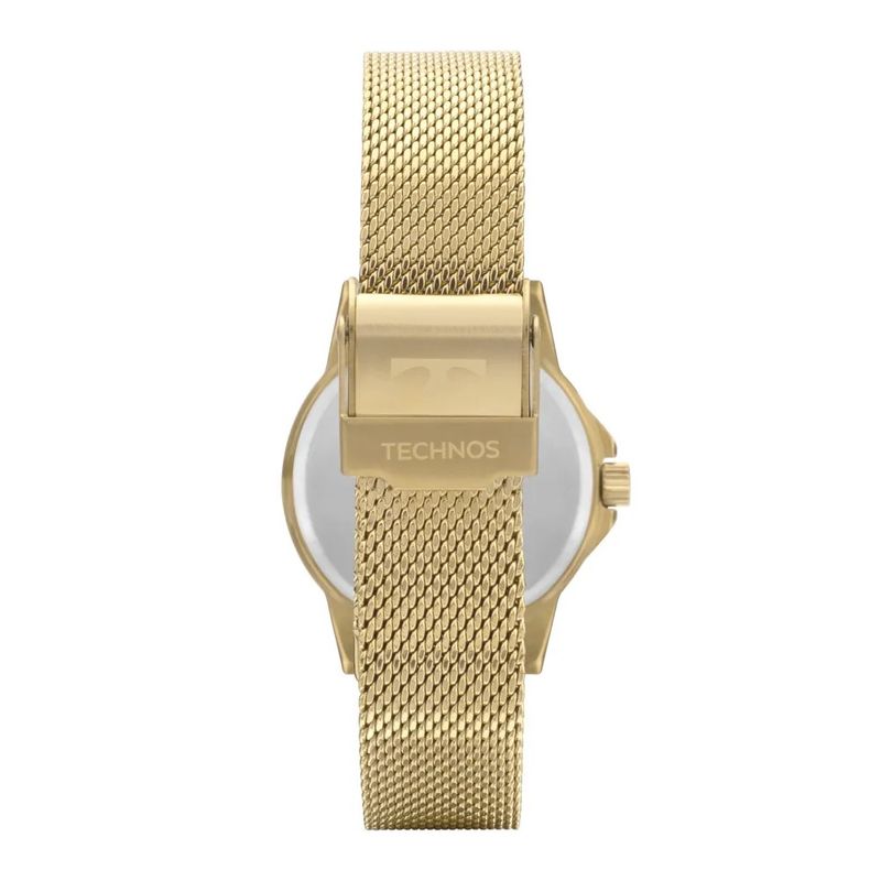 Relógio Technos Boutique com elegante pulseira de mesh e sofisticado mostrador de cor champanhe, com aplicação de madre-pérola e numeração arábica completa. Produto 100% em aço inoxidável em banho dourado, com máquina quartz Japonesa Miyota e resistência à água de 50m. Tamanho de caixa 32mm.