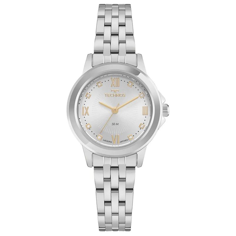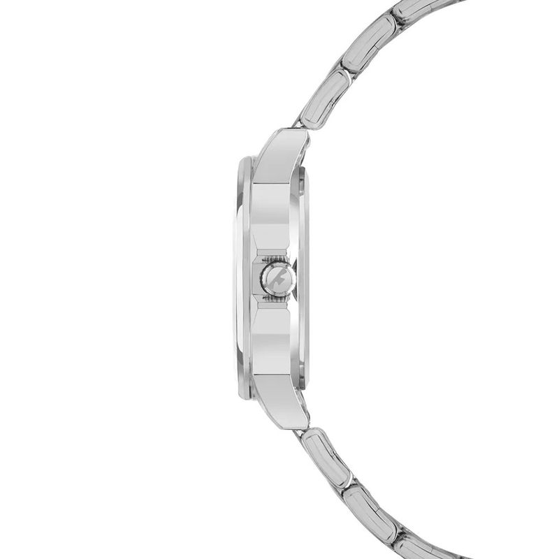 Relógio Boutique conta com um design clássico e mostrador de fácil leitura texturizado na cor prata, contando com aplicação de pedras nas marcações de hora, e numeração romana. Produto 100% em aço inoxidável, com pulseira de aço inoxidável em 5 links com banho em prata, máquina quartz Japonesa Miyota e resistência à água de 50 metros.