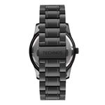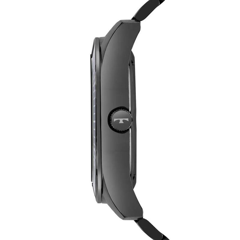 Relógio Technos Racer com aro externo de alumínio na cor azul e mostrador com efeito de profundidade, além das marcações de minutos/segundos. Produto 100% em aço inoxidável em banho grafite, com máquina quartz japonesa Miyota, calendário e resistência à água de 50m. Tamanho de caixa 46mm.