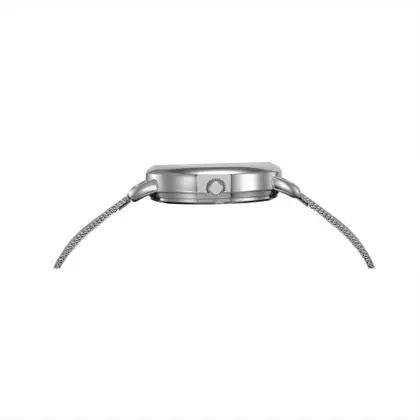 A expressão da elegância minimalista com design totalmente prateado da caixa fina em aço. O grande diferencial é a pulseira em Malha Milanese (Mesh), que proporciona um visual moderno, um caimento extremamente confortável e um ajuste fácil. A ausência de numerais no mostrador reforça a estética clean e refinada.