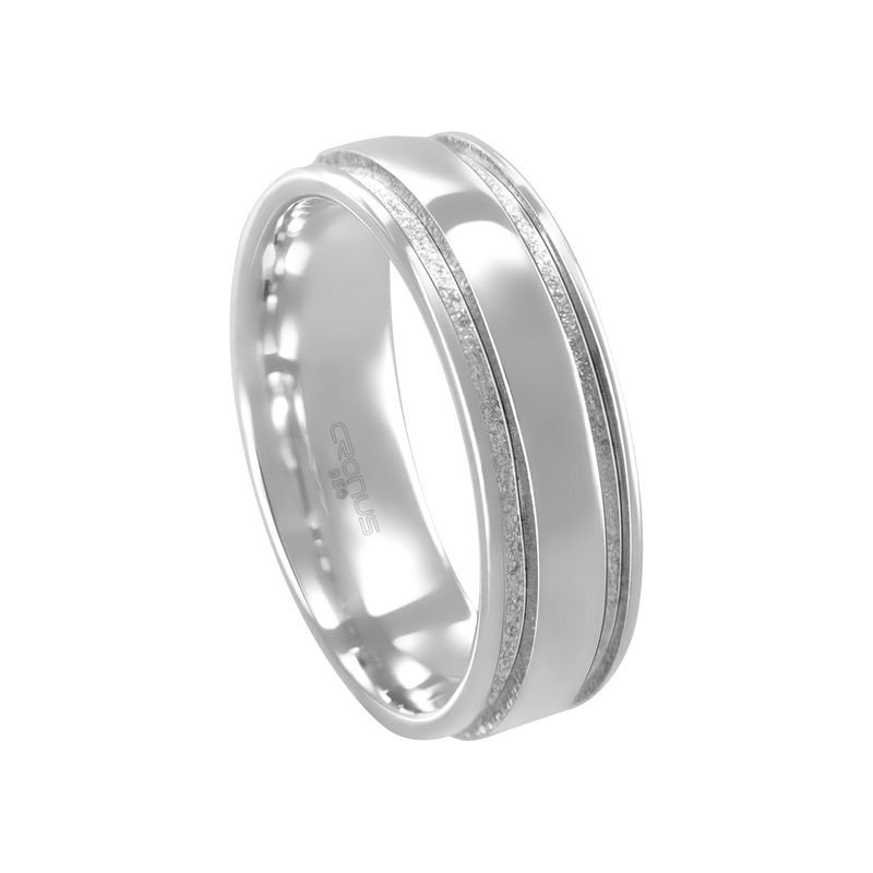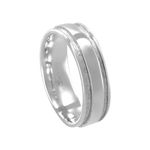 Destaque:Esta aliança se diferencia pelo design contemporâneo que combina três faixas distintas: um centro liso com acabamento polido espelhado e duas fileiras laterais com textura fosca acetinada. O contraste de acabamentos cria uma estética sofisticada e linear, ressaltada pelo formato levemente abaulado que oferece um visual robusto e moderno. É uma peça que equilibra perfeitamente o brilho clássico da prata com detalhes texturizados que conferem personalidade.