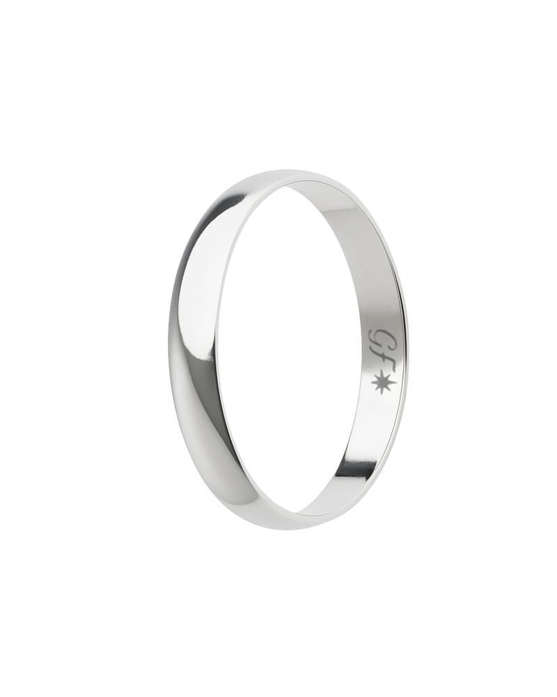 Seu formato interno anatômico (arredondado/abaulado) garante um conforto excepcional para uso contínuo, pois minimiza o atrito com a pele e permite que a aliança deslize suavemente no dedo. Ideal para uso prolongado com a máxima suavidade e ergonomia.
