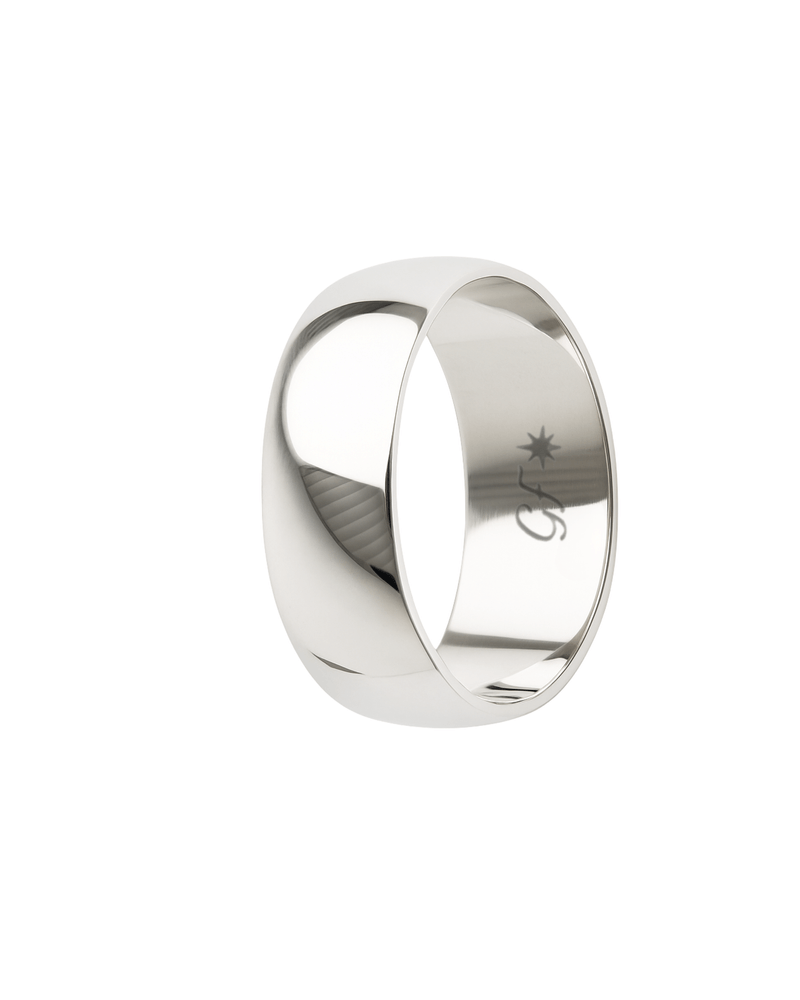 Seu formato interno anatômico (arredondado/abaulado) garante um conforto excepcional para uso contínuo, pois minimiza o atrito com a pele e permite que a aliança deslize suavemente no dedo. Ideal para uso prolongado garantindo a máxima suavidade e ergonomia.