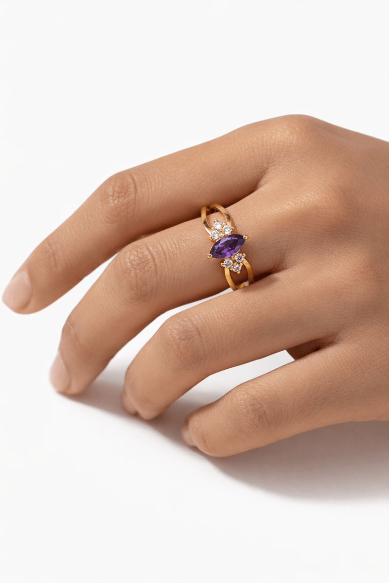 Estrutura do Aro: O aro possui uma estrutura de dois filamentos sinuosos que se encontram na base do anel, criando um visual moderno e feminino.