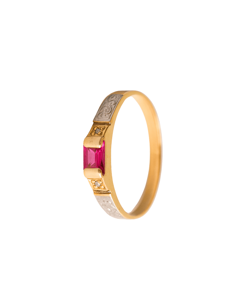 A parte superior da joia é adornada por uma pedra central em formato redondo com 3.00 mm de diâmetro, que representa a cor da graduação. O grande diferencial deste modelo é a quantidade de pedras incolores que ornamentam a peça: são 12 pedras de 1.00 ponto cada, totalizando 12 pontos. Estas gemas estão distribuídas de forma a emoldurar a pedra central e percorrer parte das hastes, criando um caminho de luz que eleva a joia a um nível superior de luxo e sofisticação.