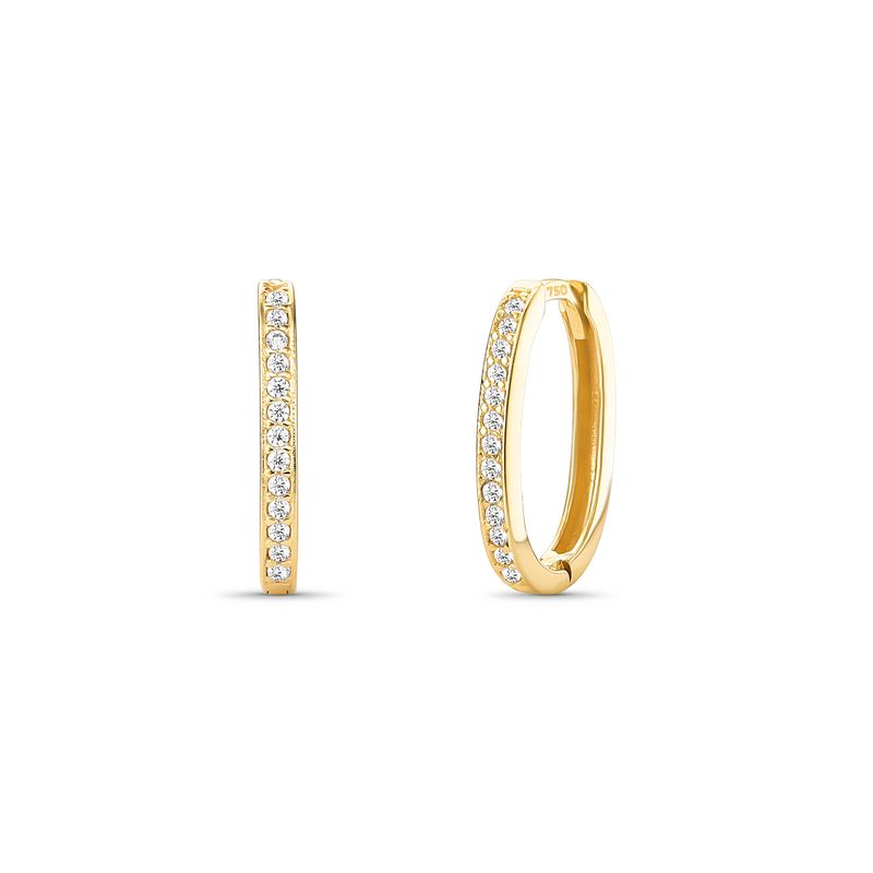 Brinco Argola Oval Cravejada em Zircônias. Com design clássico e brilho na medida certa, este modelo é perfeito para quem deseja um acessório versátil, sofisticado e pronto para elevar produções do dia a dia a momentos especiais.