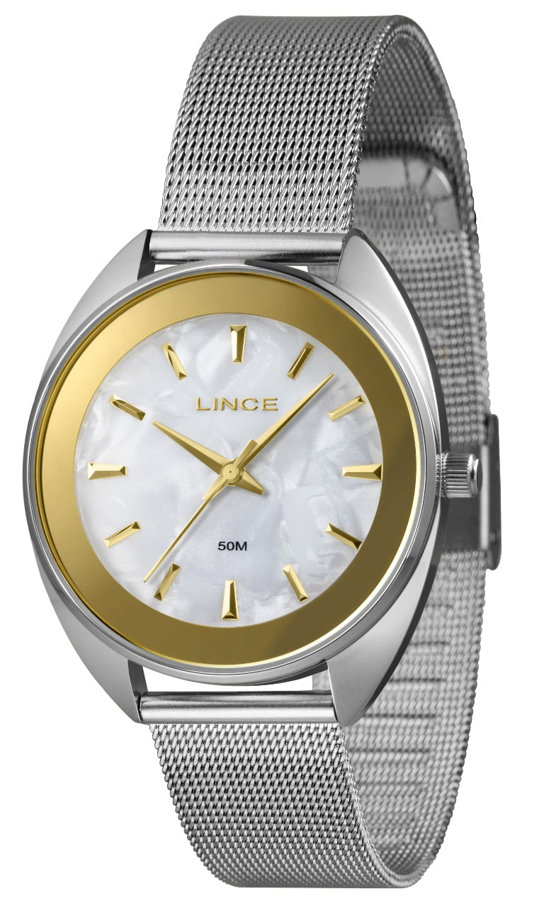 Este relógio é um verdadeiro símbolo de delicadeza e sofisticação, unindo a tendência da pulseira mesh com um mostrador luxuoso. A combinação de prata, dourado e madrepérola é de tirar o fôlego!