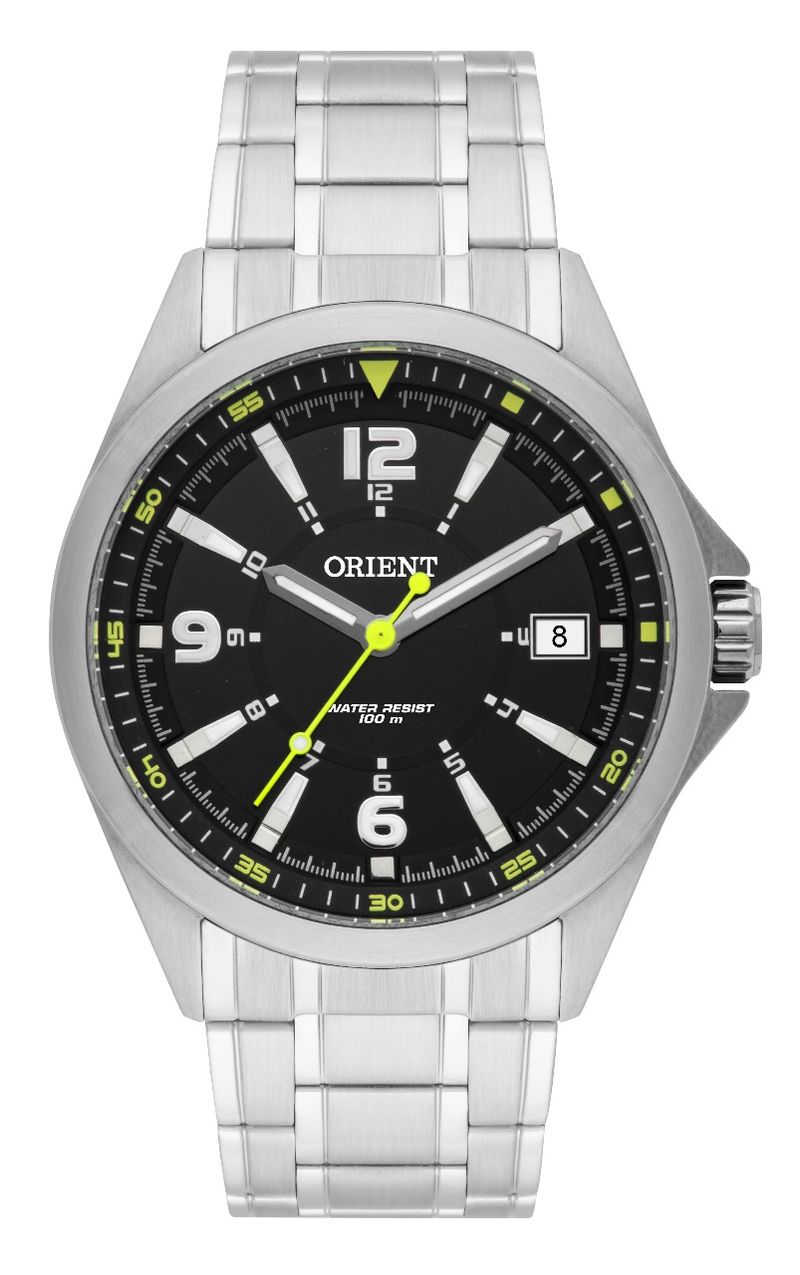 Este Relógio Orient Masculino é a escolha ideal para o homem que busca um acessório que combine um design robusto com detalhes vibrantes. A pulseira de aço prateada, o mostrador preto e os toques em verde neon criam um visual marcante, perfeito para adicionar personalidade ao seu dia a dia.
