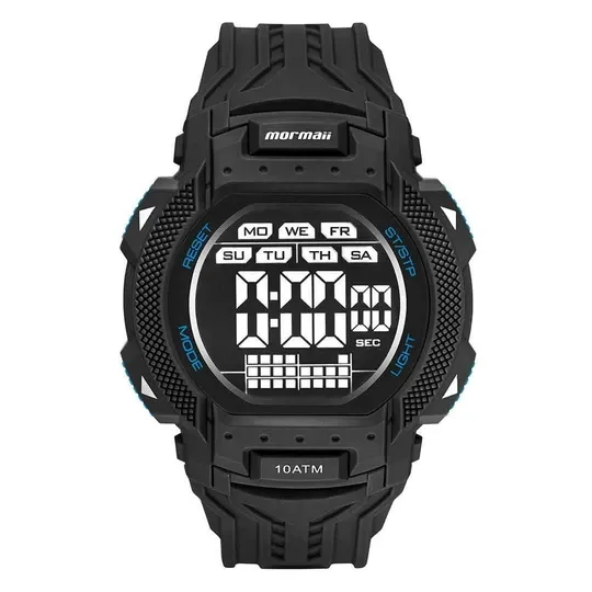 Feito para resistir, o Relógio Mormaii Digital MO18779AA é seu parceiro ideal para qualquer desafio. Com design ultra-robusto e pulseira em resina Preta Fosca, ele se destaca pelos botões laterais em Azul Elétrico, que adicionam um toque de estilo. Sua principal característica é a resistência à água de 10 ATM (100 metros), ideal para natação e esportes aquáticos. Um relógio digital completo, confiável e cheio de atitude.
