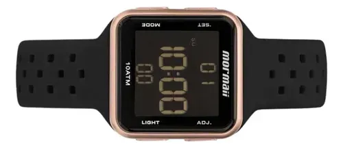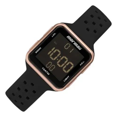 O Relógio Mormaii Digital MO19800 é o acessório perfeito para unir o estilo fashion com a praticidade esportiva. O design quadrado e minimalista é realçado pela caixa Rosé Gold que contrasta com a pulseira Preta de silicone. Leve, confortável e com 10 ATM de resistência à água, ele é ideal para te acompanhar do treino ao passeio. Possui funções essenciais como cronômetro e alarme.