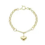 JóiasPulseiraPulseira Elo Português 5,9mm com Pingente Coração Vazado e 2 aros Ouro Amarelo 18K