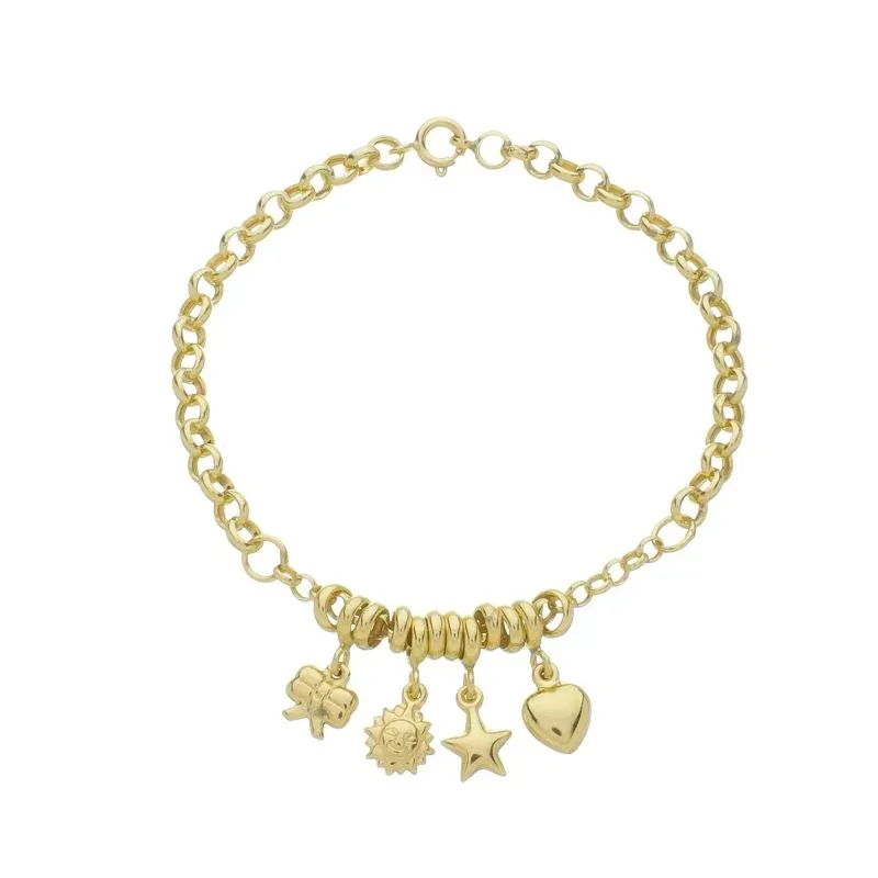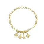 Pulseira Elo Português 4,7mm com Pingentes Variados Ouro Amarelo 18K
