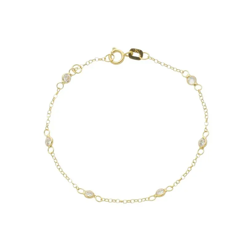 Pulseira Infantil Com Zircônia Ouro Amarelo 18K é uma pulseira infantil em ouro 18K, desenvolvida para oferecer delicadeza, segurança e beleza. Ideal para presentear e para uso no dia a dia, combina charme e durabilidade. com medidas de 13cm. Ótima opção para quem busca pulseira infantil de ouro 18K com design sofisticado.