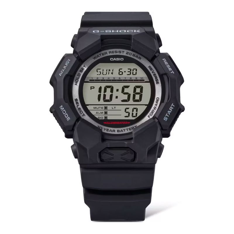 Desfrute de menos trocas de bateria com um G-SHOCK de caixa grande com uma bateria de 10 anos com a qual você não terá que se preocupar por muito tempo. O GD-010 digital oferece recursos úteis como hora mundial e cronômetro, bem como uma luz de LED de alto brilho, que pode ser facilmente acessada a partir do grande botão na frente da caixa, garantindo visibilidade mesmo no escuro. Feito com resina de base biológica e equipado com uma bateria de 10 anos, este G-SHOCK é ótimo se você quiser reduzir o impacto ambiental. Disponível em uma seleção de esquemas de cores de estilo de trabalho baseados em preto para um design legal que transita com facilidade de cenários casuais para situações de trabalho.