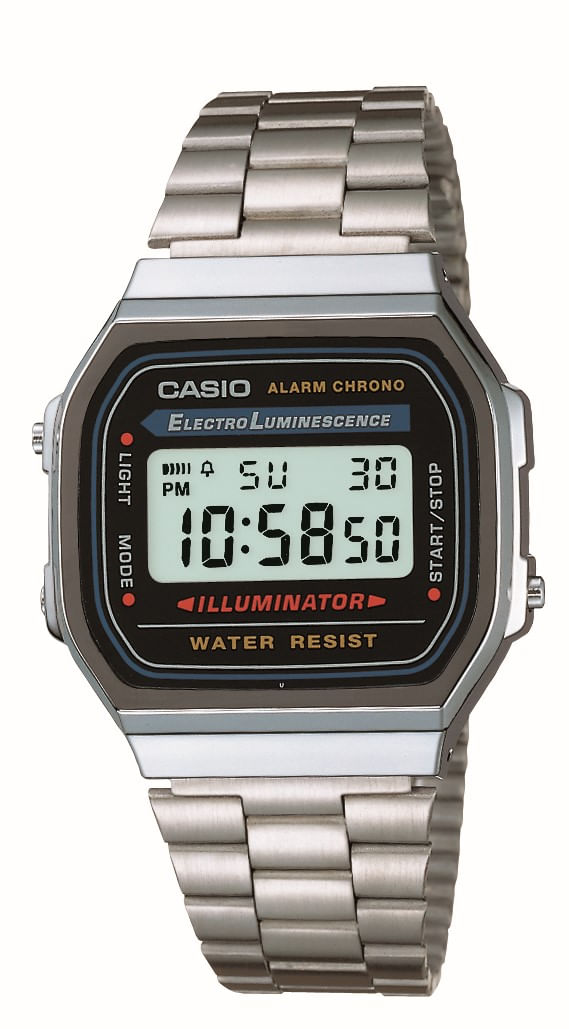 Um modelo padrão. Um relógio de metal simples que é fácil de combinar com o seu visual.