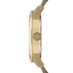 Com sua pulseira de aço inoxidável em 3 links, ele apresenta mostrador de fácil leitura na cor champanhe, com aplicação de textura sofisticada e indexes.