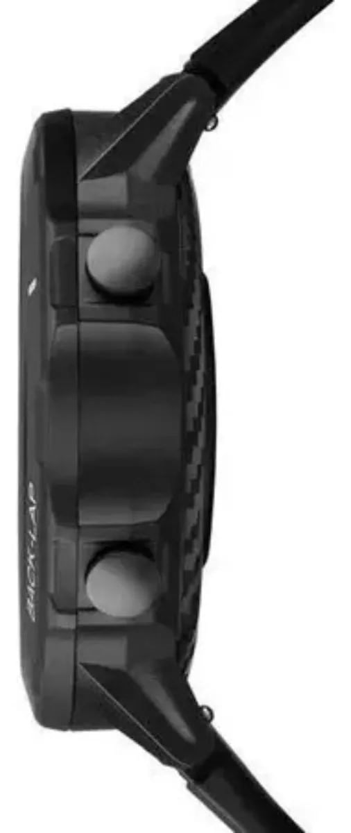 O relógio acompanha duas pulseiras: uma de aço inoxidável em 3 links com acabamento alternado (escovado e espelhado) e uma de silicone para uso esportivo.